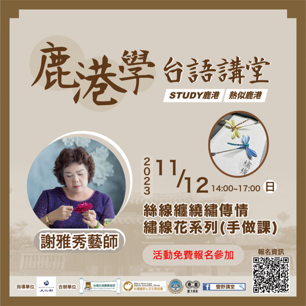 [蠻野台語講堂]本土瀕危語言ê棲地復育《鹿港學台語講堂》絲線纏繞繡傳情~繡線花系列(手作課)