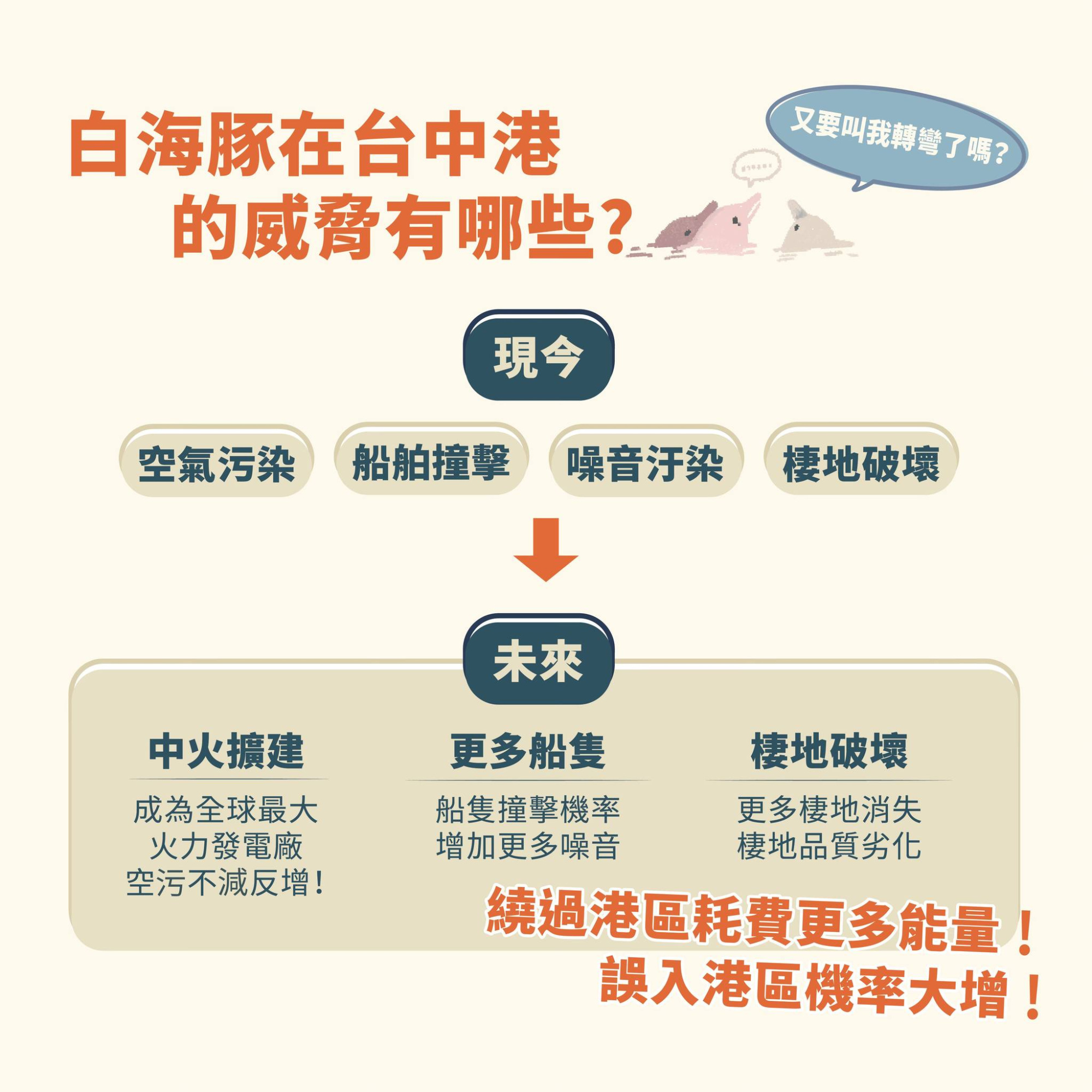 恐致白海豚被迫轉彎或撞牆】