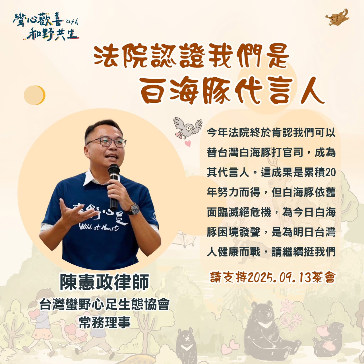 蠻野22週年感恩茶會|常務理事陳憲政律師的誠摯邀請